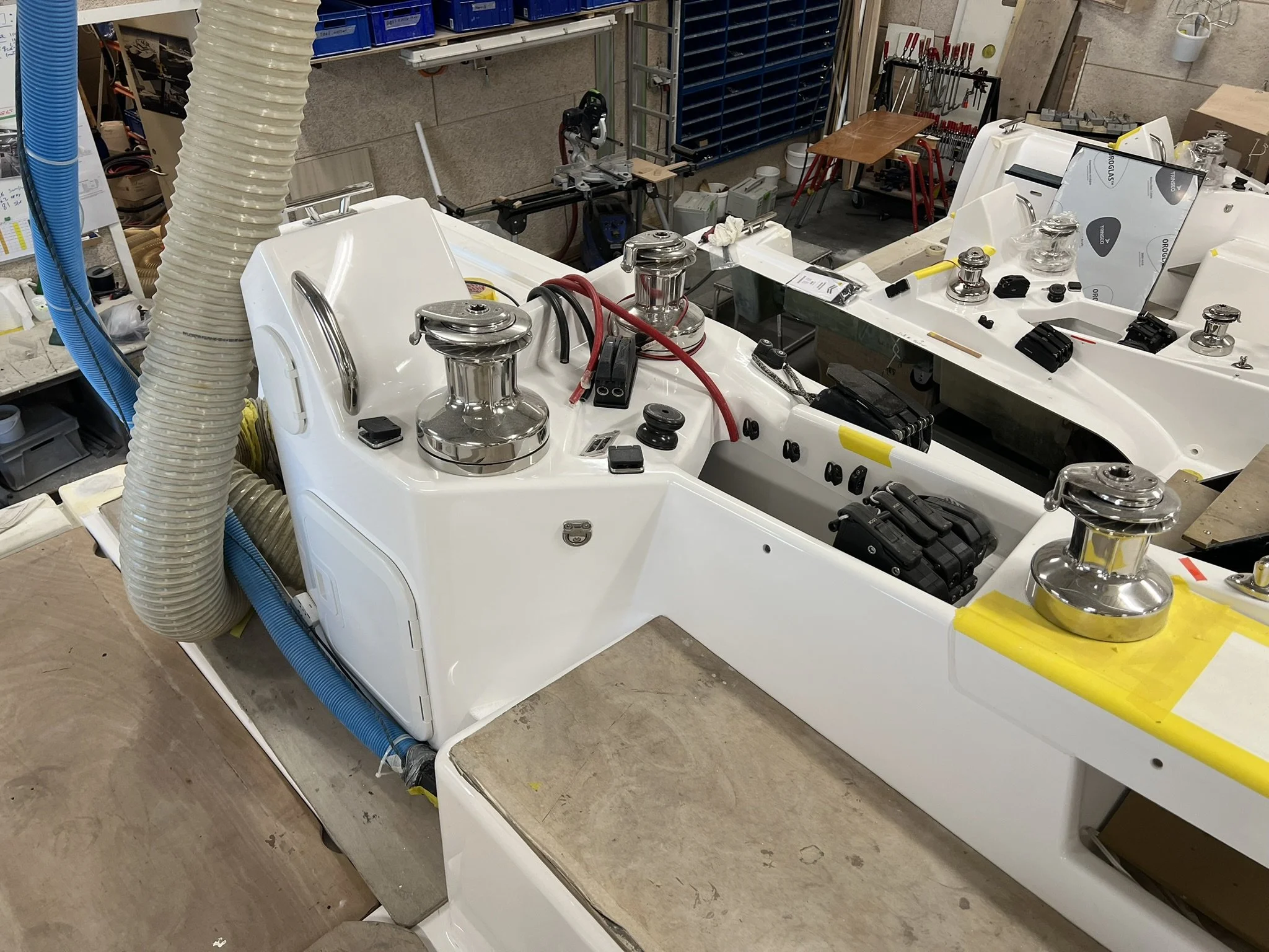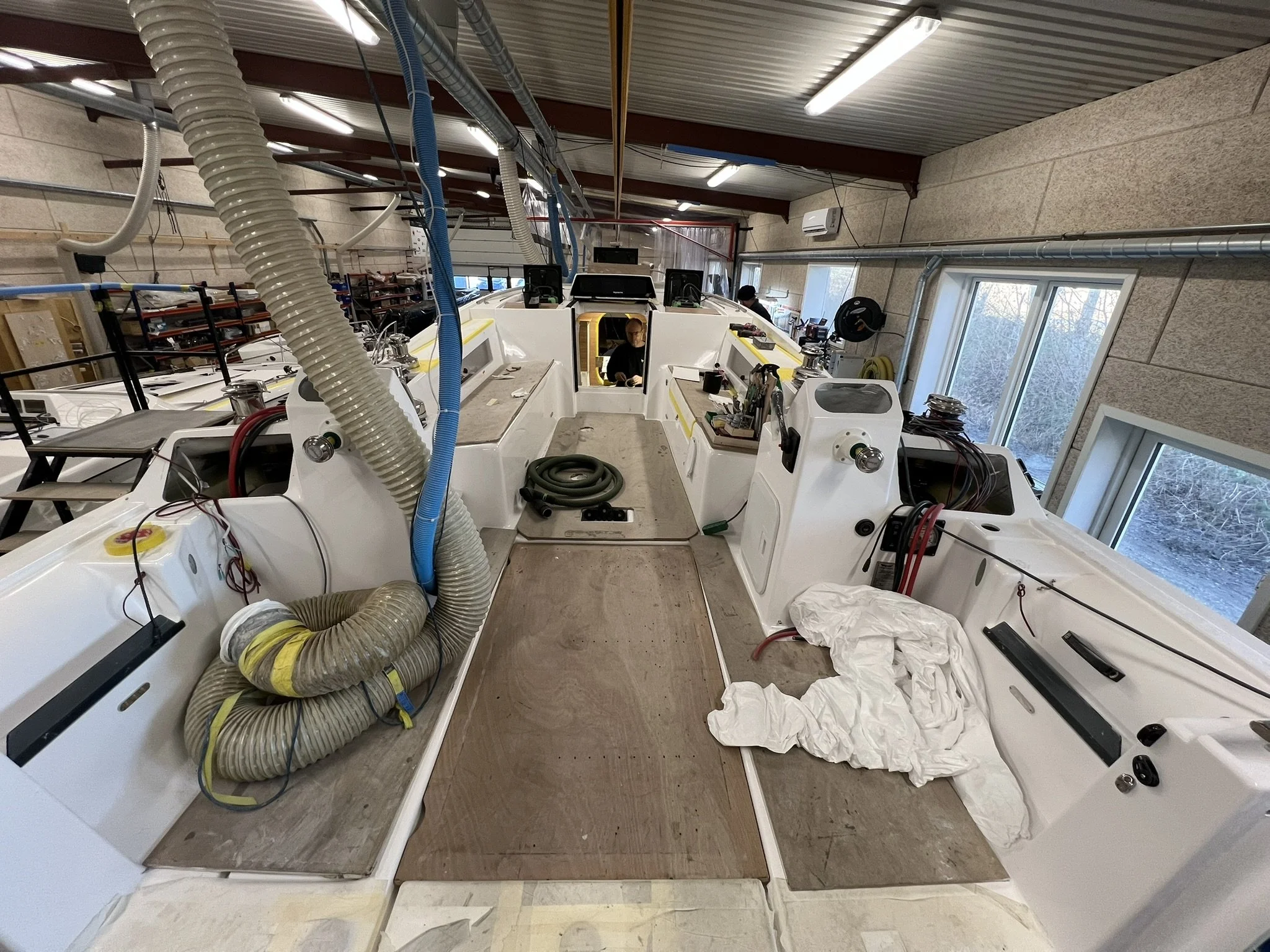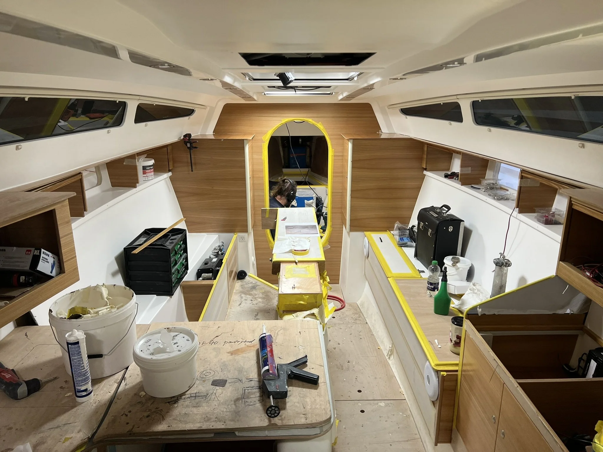 The folks a Dragonfly send me a few more pictures of the latest progress. In the last set, they were about to join the hull and the deck, and now we have some interior shots after that has happened. It’s actually a little strange to see it with a roof!