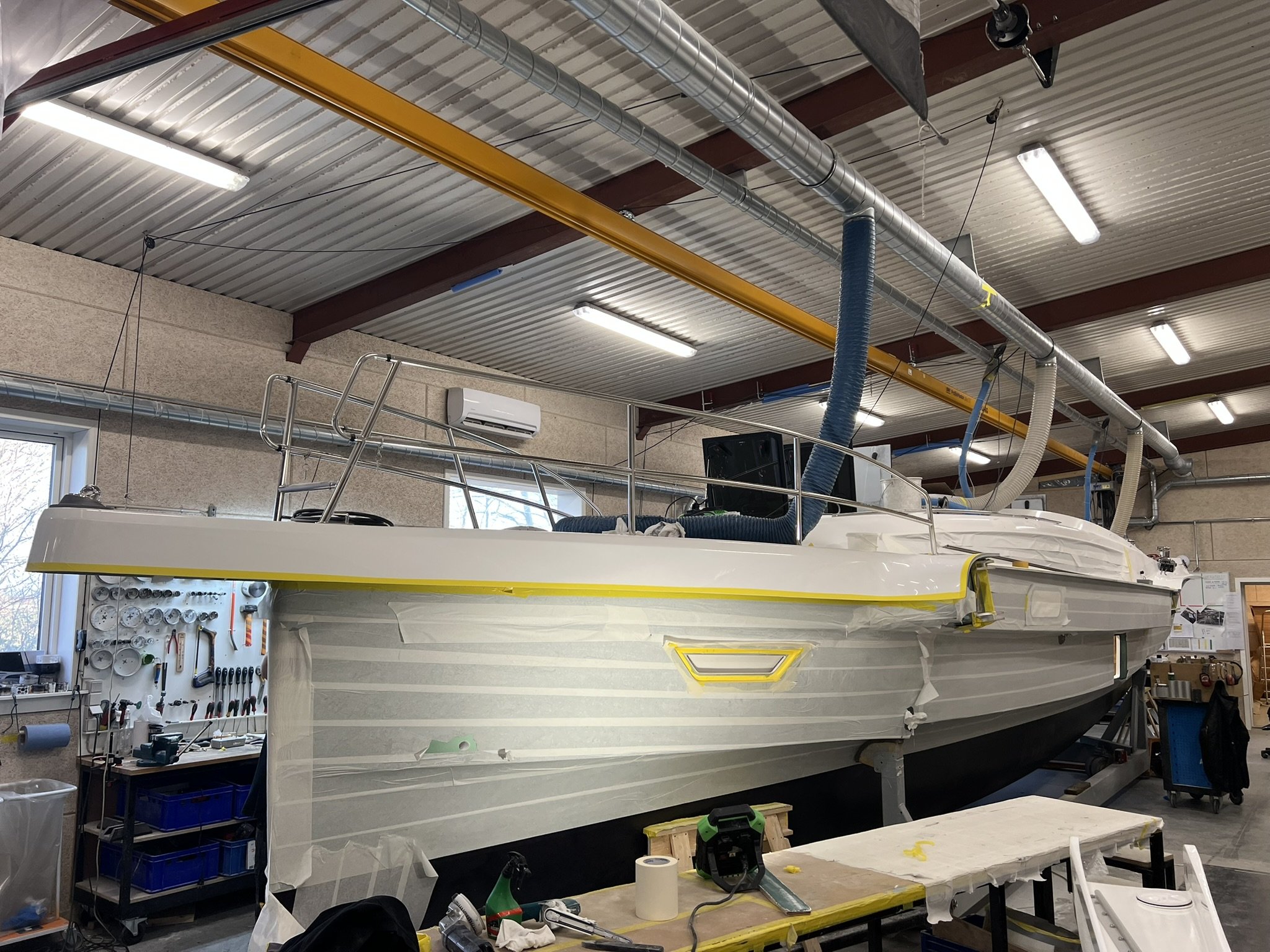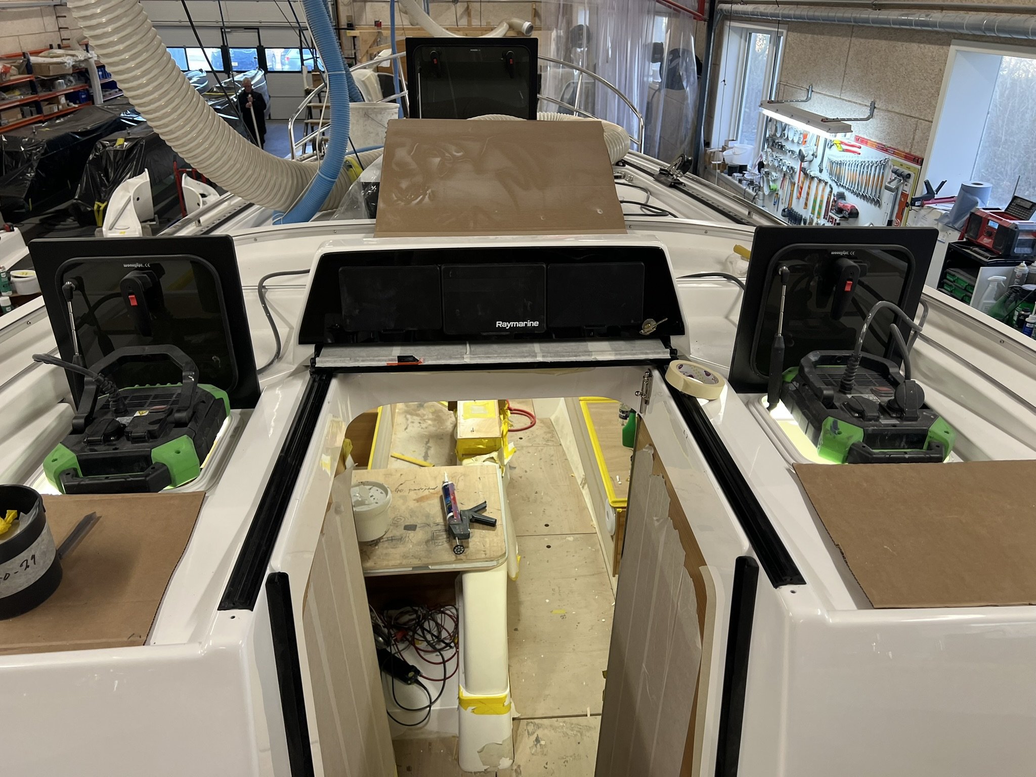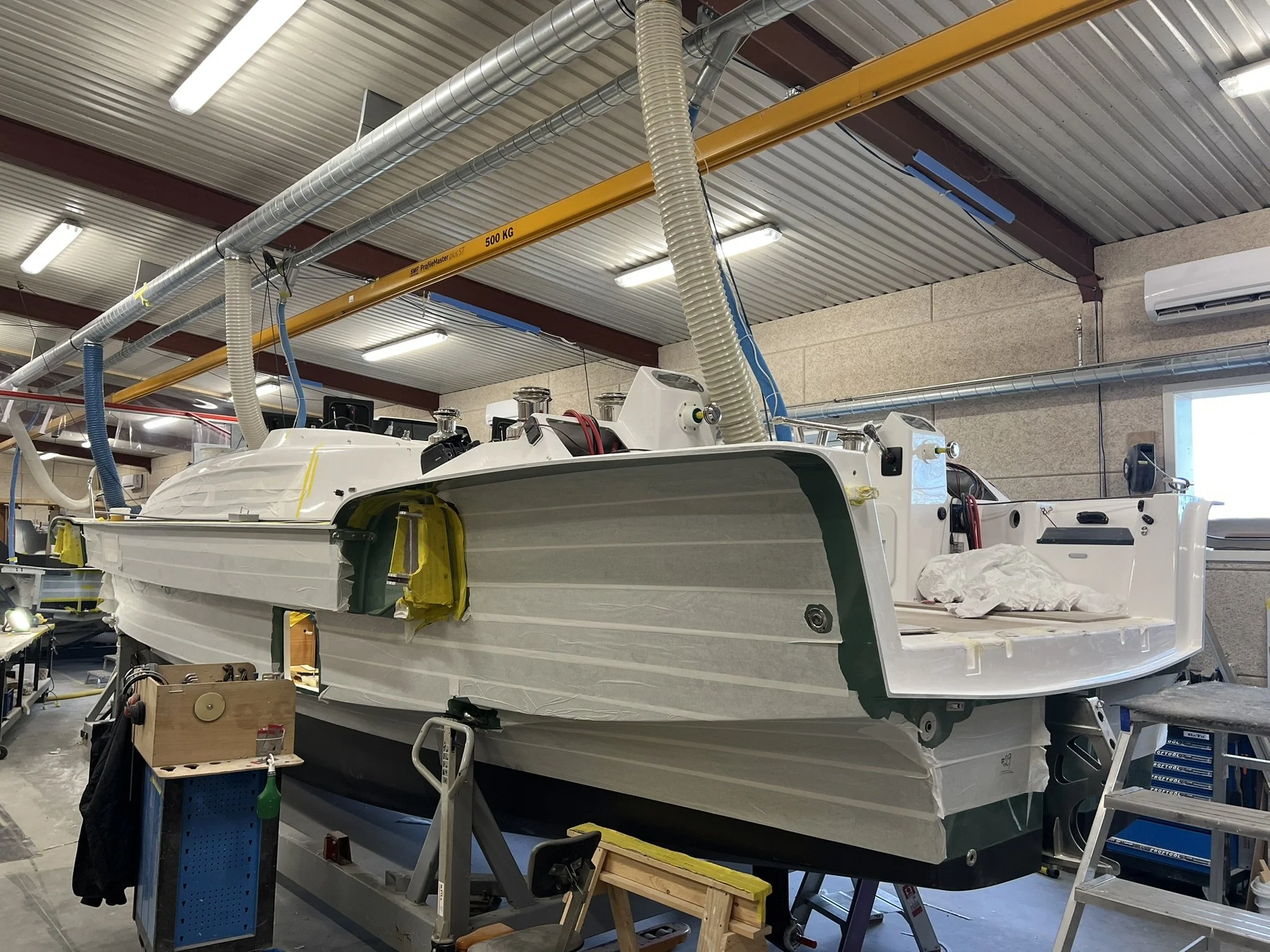The folks a Dragonfly send me a few more pictures of the latest progress. In the last set, they were about to join the hull and the deck, and now we have some interior shots after that has happened. It’s actually a little strange to see it with a roof!