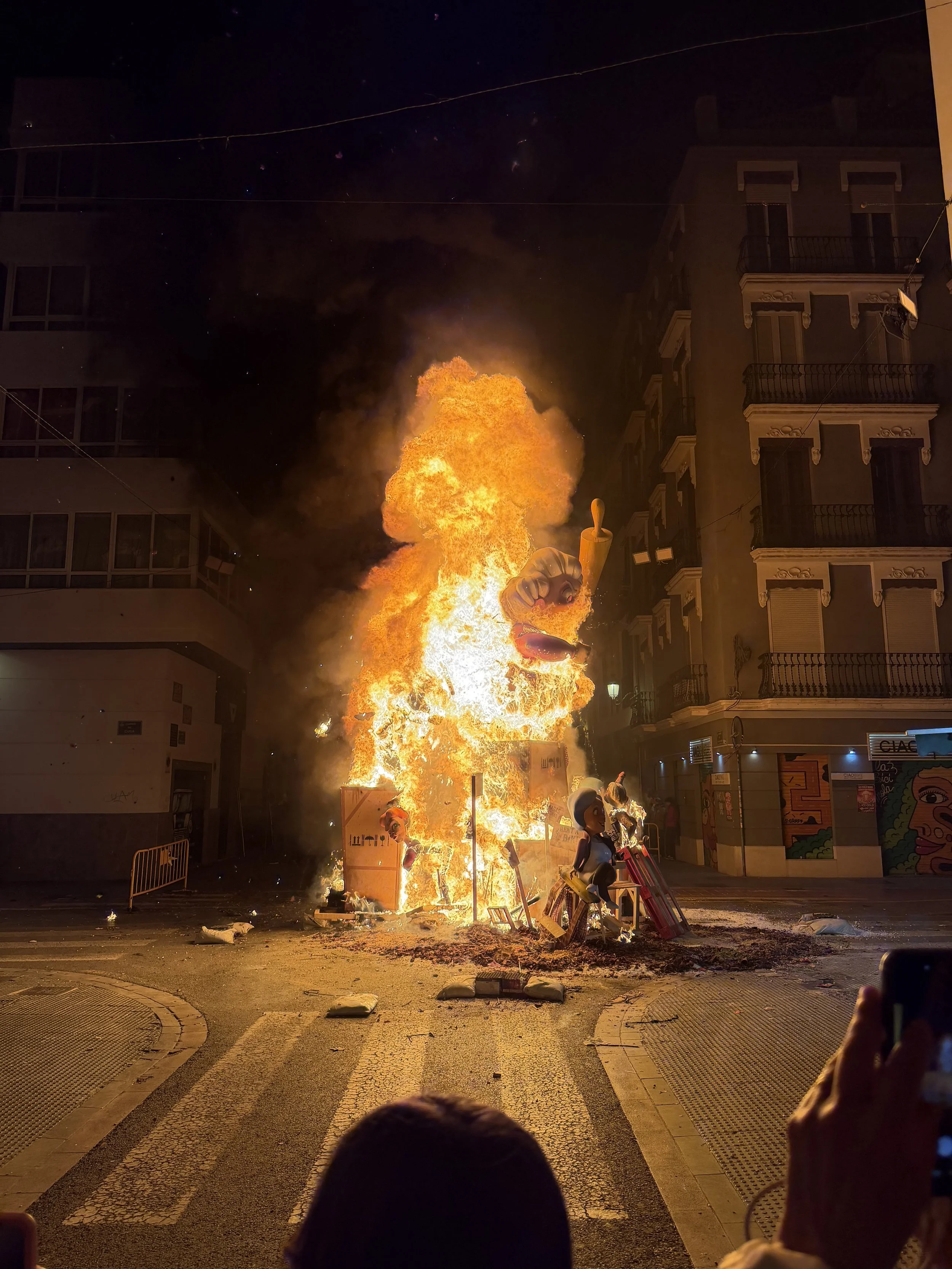 After that they burned their Falla, and embers were shooting skyward over the tops of the 5 and 7 story buildings on the street. There is a reason they use tile roofs here in Valencia!